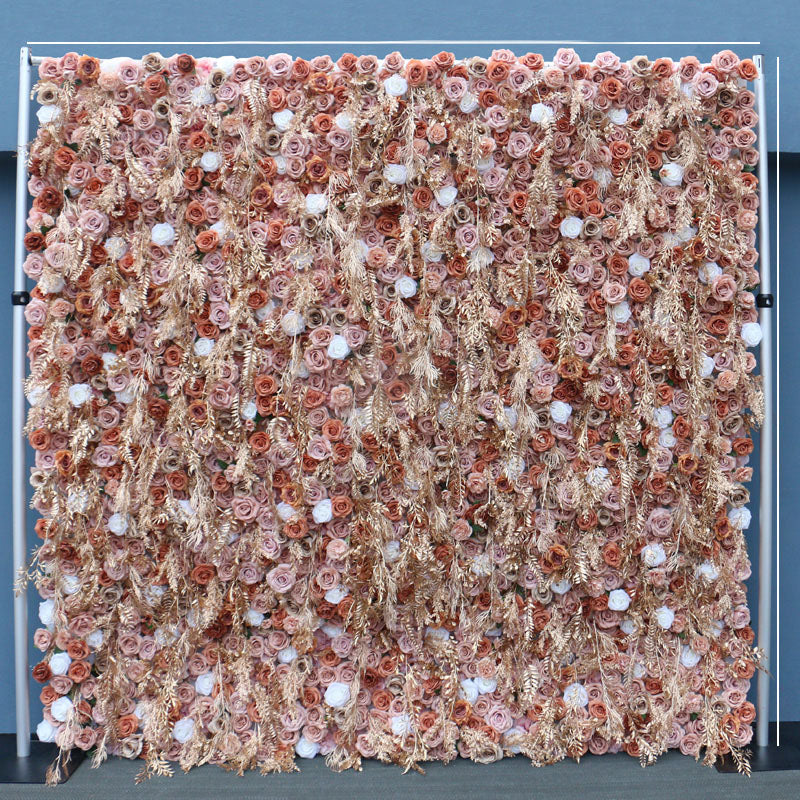 Luxury 5D Golden Roll Up Fabric Artificial Flower Wall Cloth Rose Plants Wall Arrangement Wedding Backdrop Decor Marriage Props A621 A1101