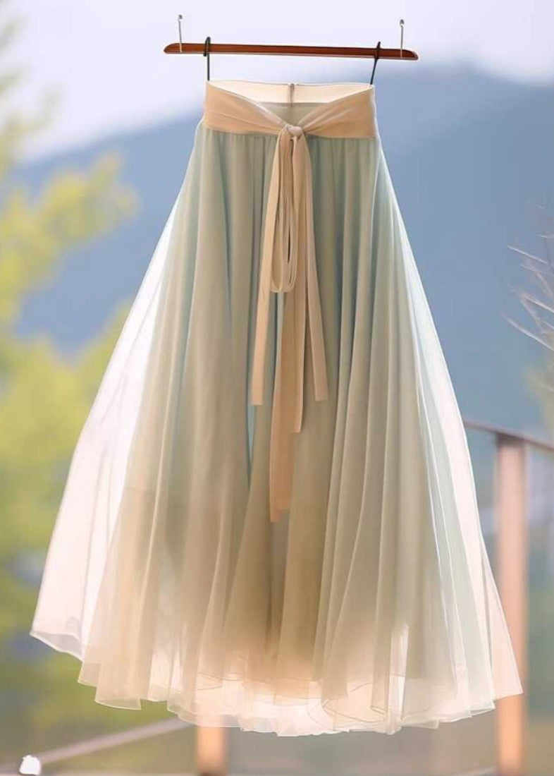 Simple Light Blue Wrinkled Lace Up Tulle Skirt Summer